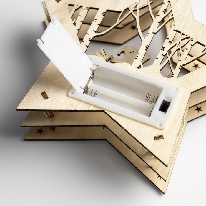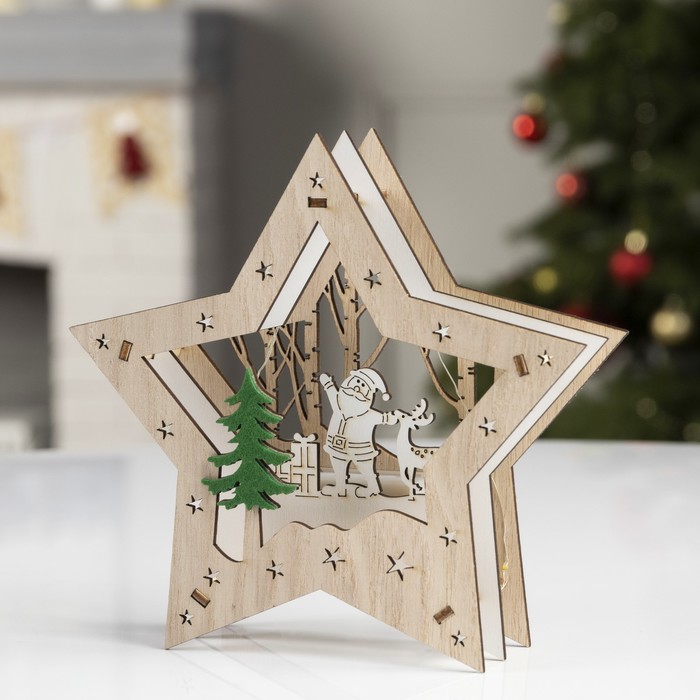 Светодиодная фигура «Звезда с Дедом Морозом» 17×17×4 см, дерево, от батареек АААх2, свечение тёплое белое