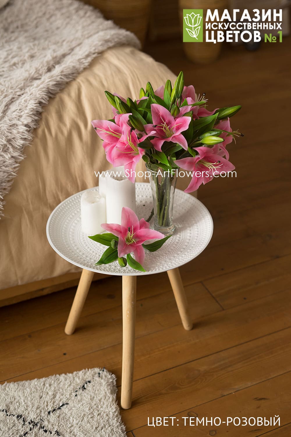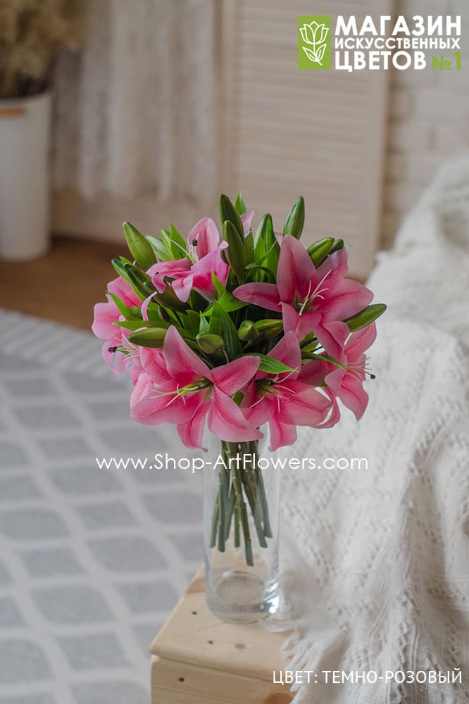 Лилия малая (1 открытый, бутон, 2- закрытых) (темно-розовый)