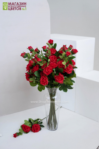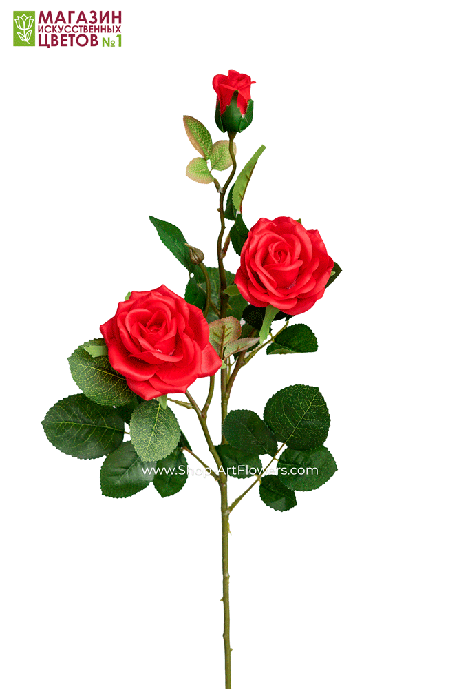 Роза 3 бутона, силикон - красный