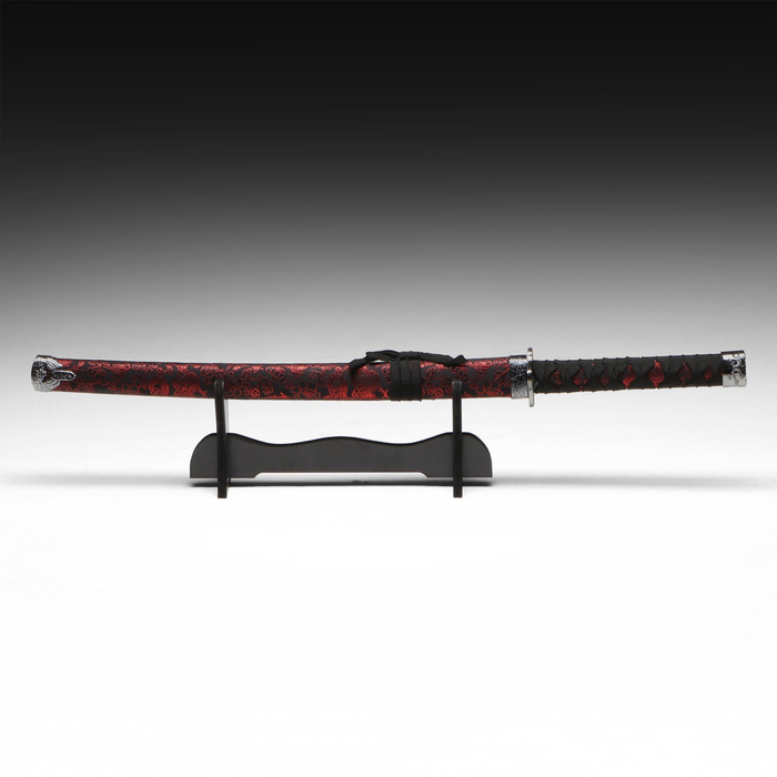 Макет оружия «Сувенирная катана на подставке», чёрные ножны с красным узором, 70 см