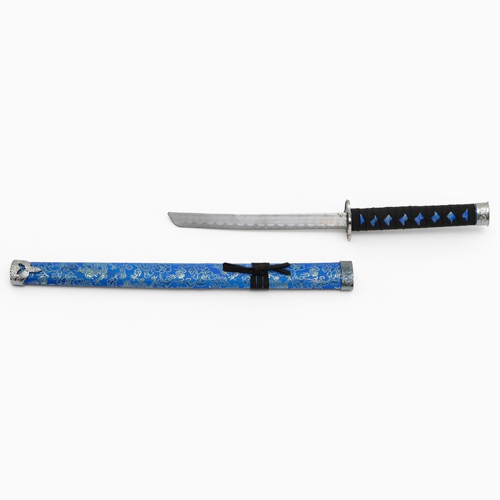 Макет оружия «Сувенирная катана на подставке», синие ножны с цветочным узором, 70 см