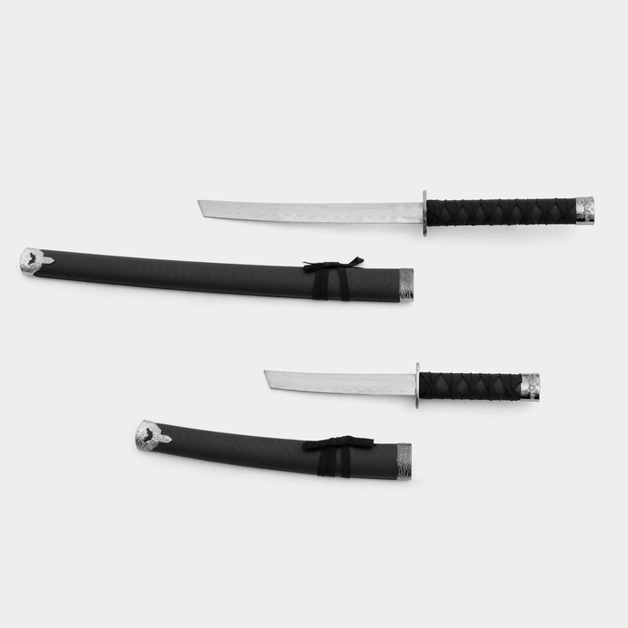 Погрузитесь в мир восточной культуры с уникальным набором сувенирных катан, который станет не только стильным украшением вашего интерьера, но и идеальным подарком для ценителей оригинального искусства. Этот набор включает две катаны длиной 47 см и 70 см, каждая из которых выполнена с вниманием к деталям и оформлена в элегантном черном цвете.