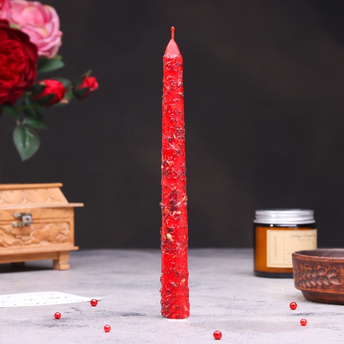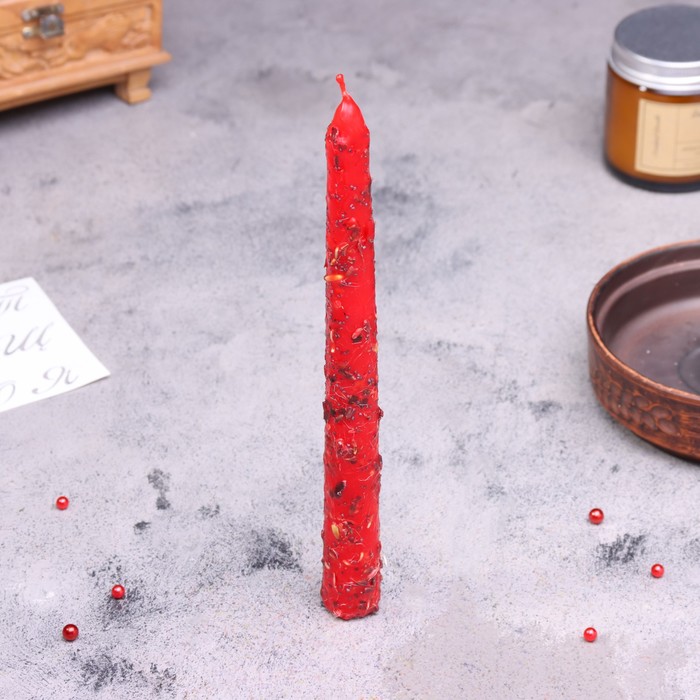Свеча магическая «Любовная магия», с травой, красная, 20 см