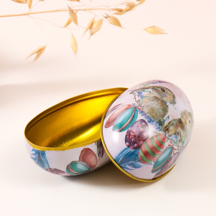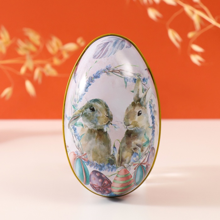Металлическая шкатулка - яйцо «Два пасхальных зайчика», для украшений, хранения мелочи, 7×6.5×11 см