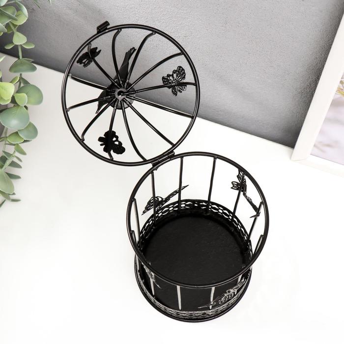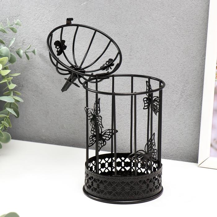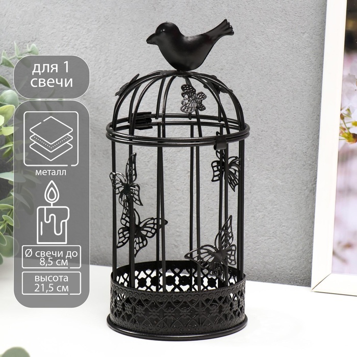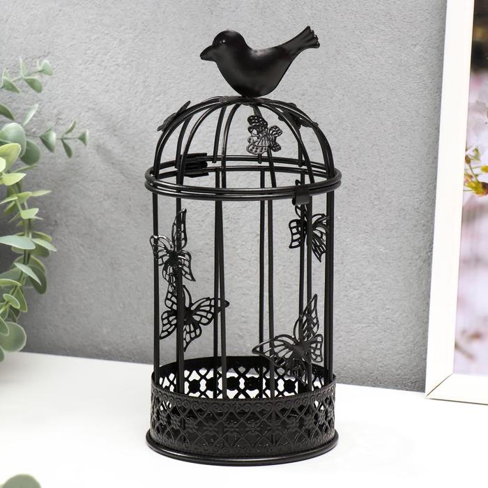 Металлический подсвечник-фонарь 1 свеча «Птица и клетка с бабочками», чёрный, 21.5×10×10 см