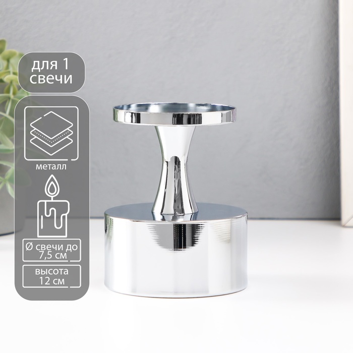 Металлический подсвечник на 1 свечу «Алессио», d=7.5 см, серебро 9×9×12 см
