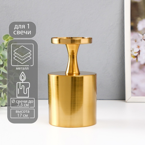 Металлический подсвечник на 1 свечу «Алессио», d=7.5 см, золото 9.5×9.5×17 см