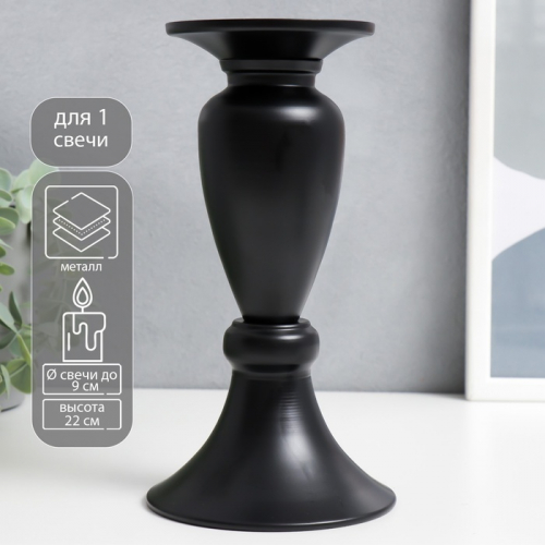 Металлический подсвечник на 1 свечу «Атмосфера», чёрный матовый, 22×11.5×11.5 см