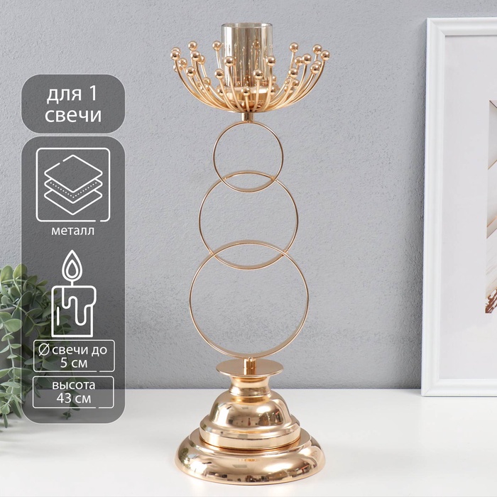 Металлический подсвечник на 1 свечу «Аурелия», золото, d=5 см, 15×15×43 см