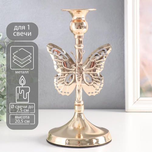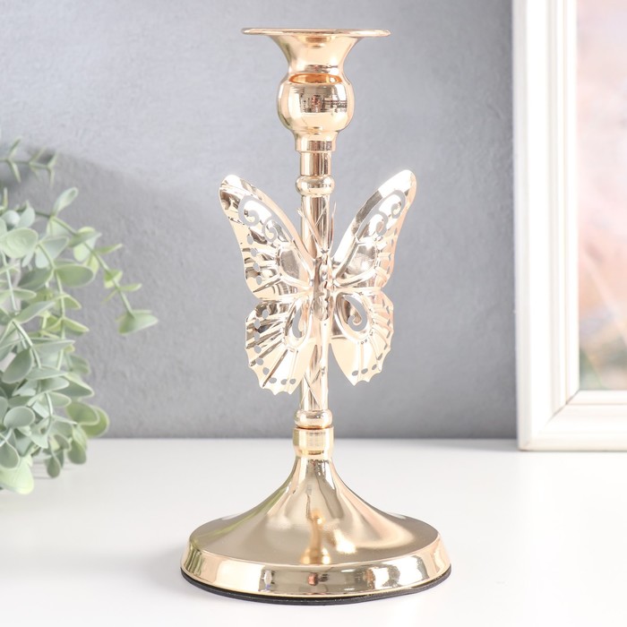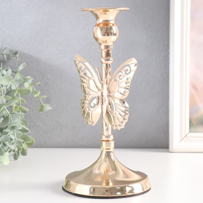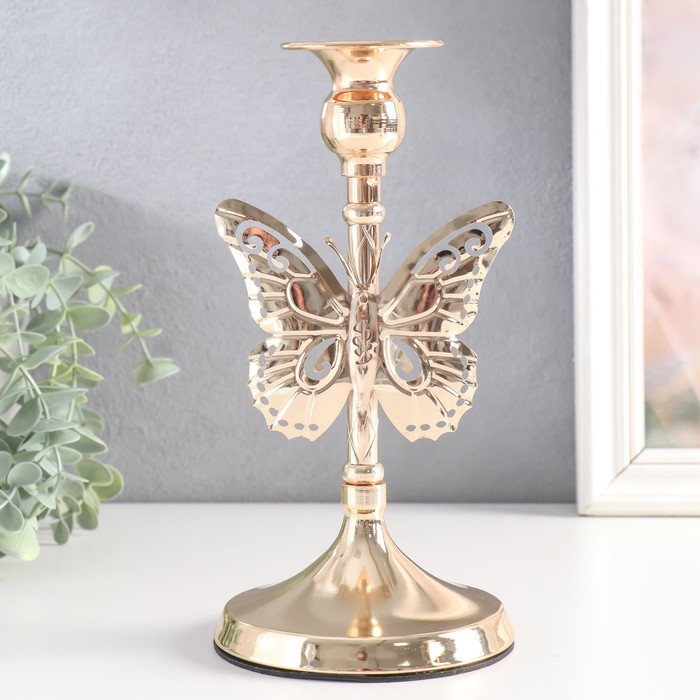 Металлический подсвечник на 1 свечу «Ажурная бабочка», d=2.5 см, золото, 11×11×20.5 см