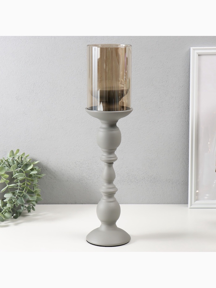 Металлический подсвечник на 1 свечу d=9 см «Хевард», серый, d=9 см, 10×10×36 см
