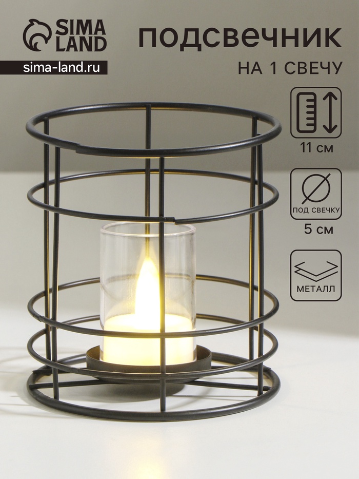 Металлический подсвечник на 1 свечу «Далила», чёрный, d=5 см, 10.5×10.5×11 см