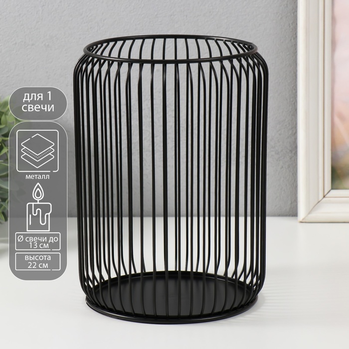 Металлический подсвечник на 1 свечу до 13 см «Клетка», чёрный, 16.5×16.5×22 см
