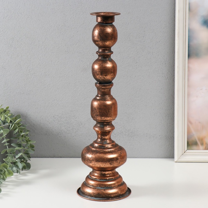 Металлический подсвечник на 1 свечу «Эрмете», состаренная бронза, 13.5×13.5×43.5 см