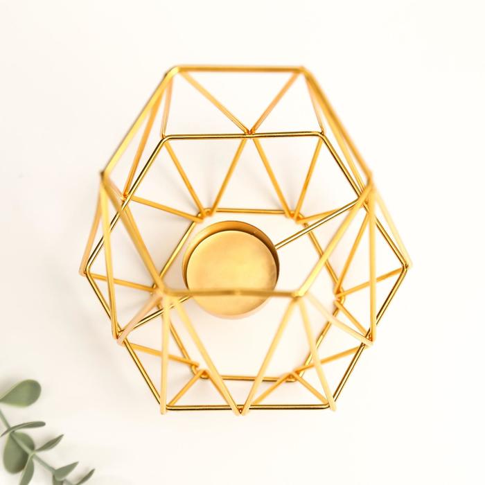 Металлический подсвечник на 1 свечу «Фонарь. Геометрия», золото, 17×12.5×14 см