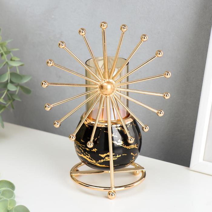 Металлический подсвечник на 1 свечу «Колесо обозрения», золото на чёрном мраморе, 20×14×9 см
