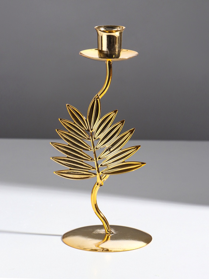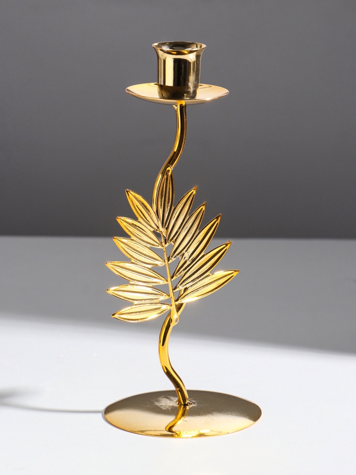 Металлический подсвечник на 1 свечу «Лист папоротника», d=2 см, 9×9×21 см