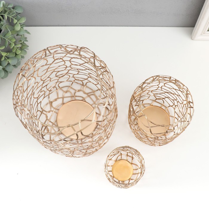 Металлический подсвечник на 1 свечу «Лофт. Переплетение», набор 3 шт., d=5;8;15 см; 8×10 см, 10×18 см, 15×22 см
