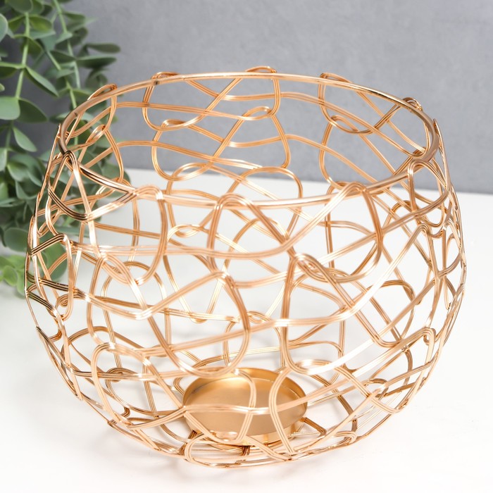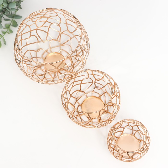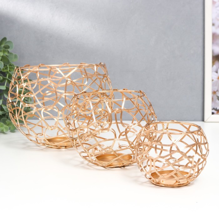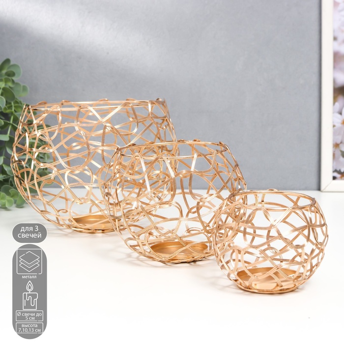 Металлический подсвечник на 1 свечу «Лофт. Переплетение», золото, набор 3 шт., 7×9×9 см; 10×12.5×12.5 см; 13×16×16 см