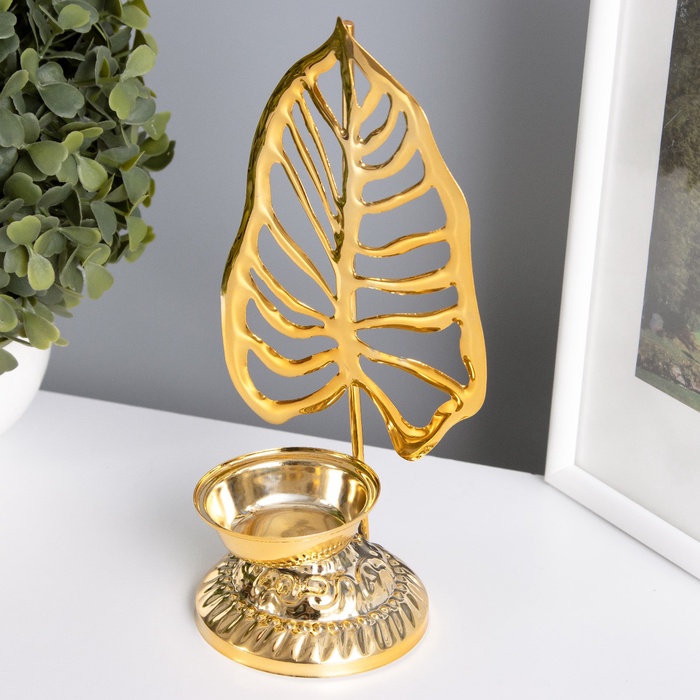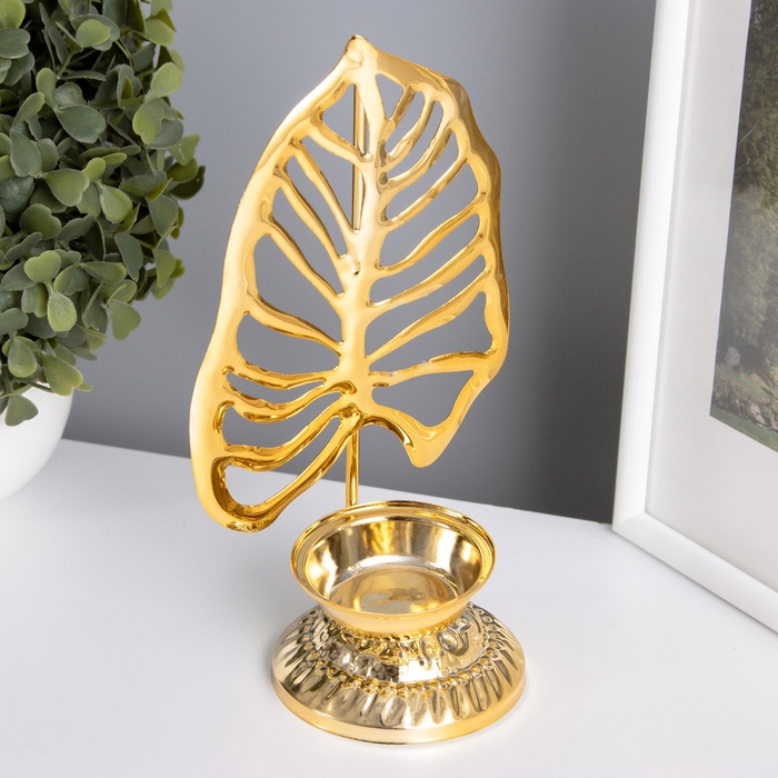 Металлический подсвечник на 1 свечу «Пальмовый лист на подставке», золото, d=4.7 см, 7.5×10.5×20 см