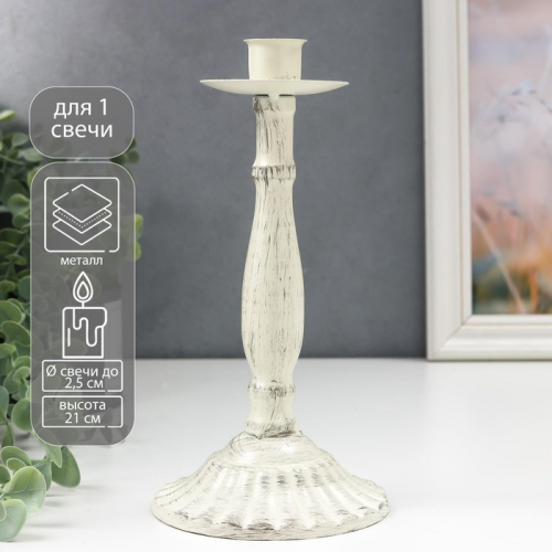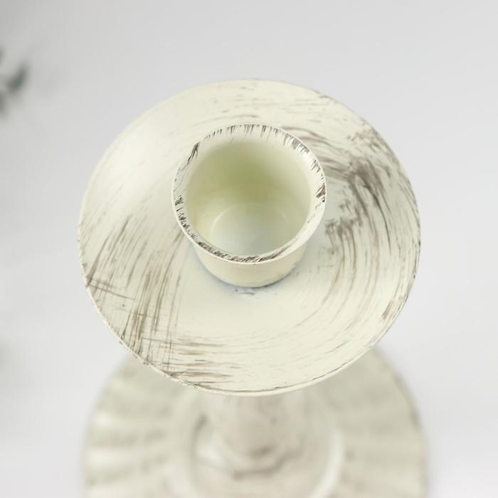 Металлический подсвечник на 1 свечу «Прованс», белый состаренный, 21×11.5×11.5 см