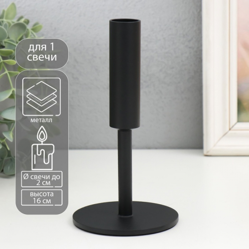 Металлический подсвечник на 1 свечу «Симпл», d=2 см, чёрный, 9×16 см
