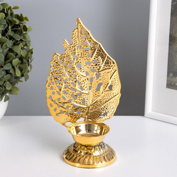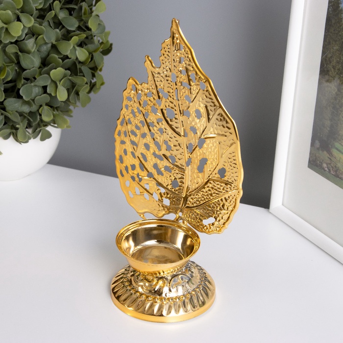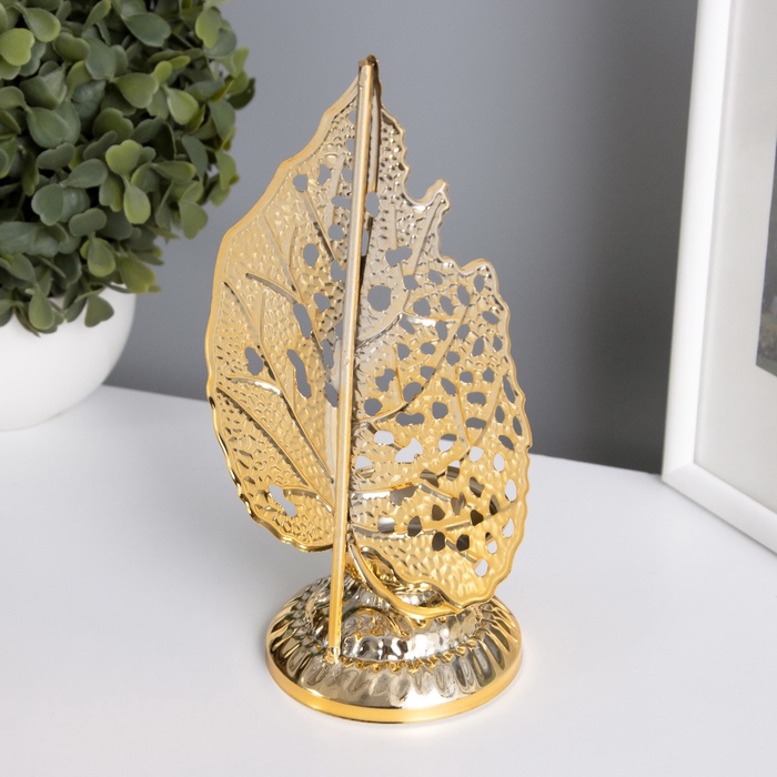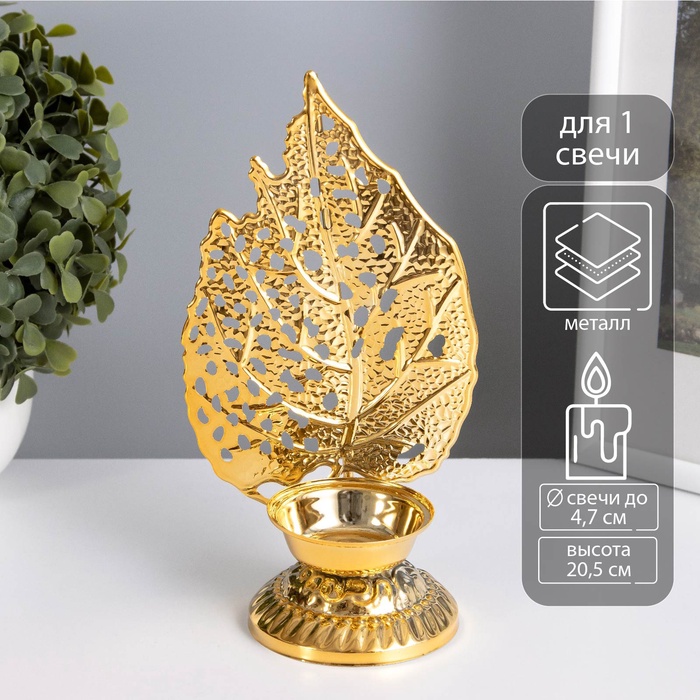 Металлический подсвечник на 1 свечу «Скелетированный лист», золото, d=4.7 см, 7.5×10.5×20.5 см