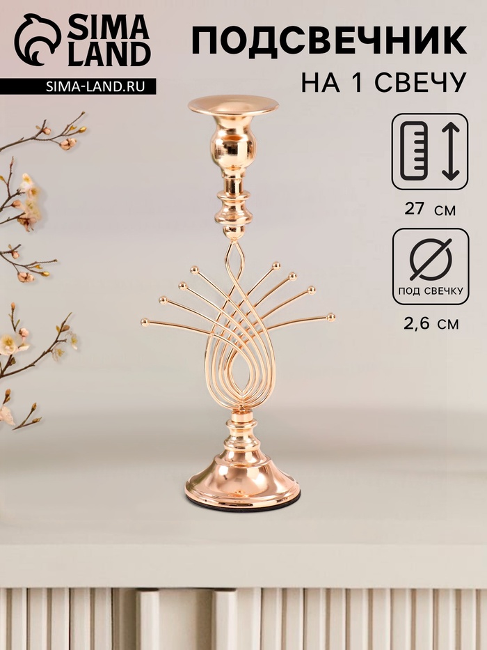 Металлический подсвечник на 1 свечу «Золотое сечение», d=2-6 см, 8×8×27 см