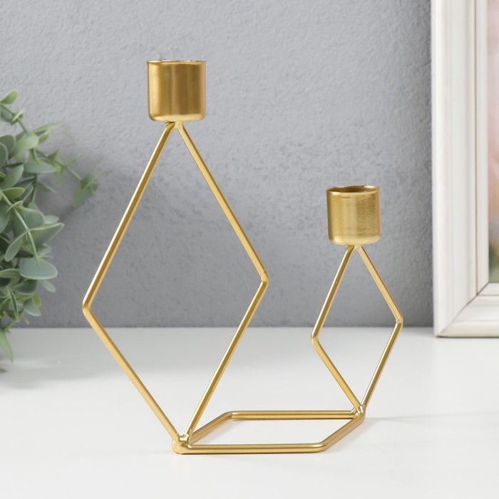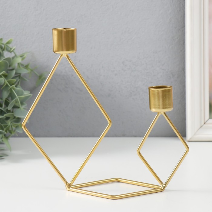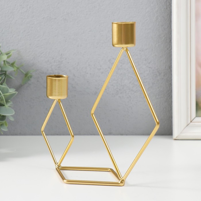 Металлический подсвечник на 2 свечи «Геометрия. Ромбы», золото, d=2.3 см, 7.8×18×19 см