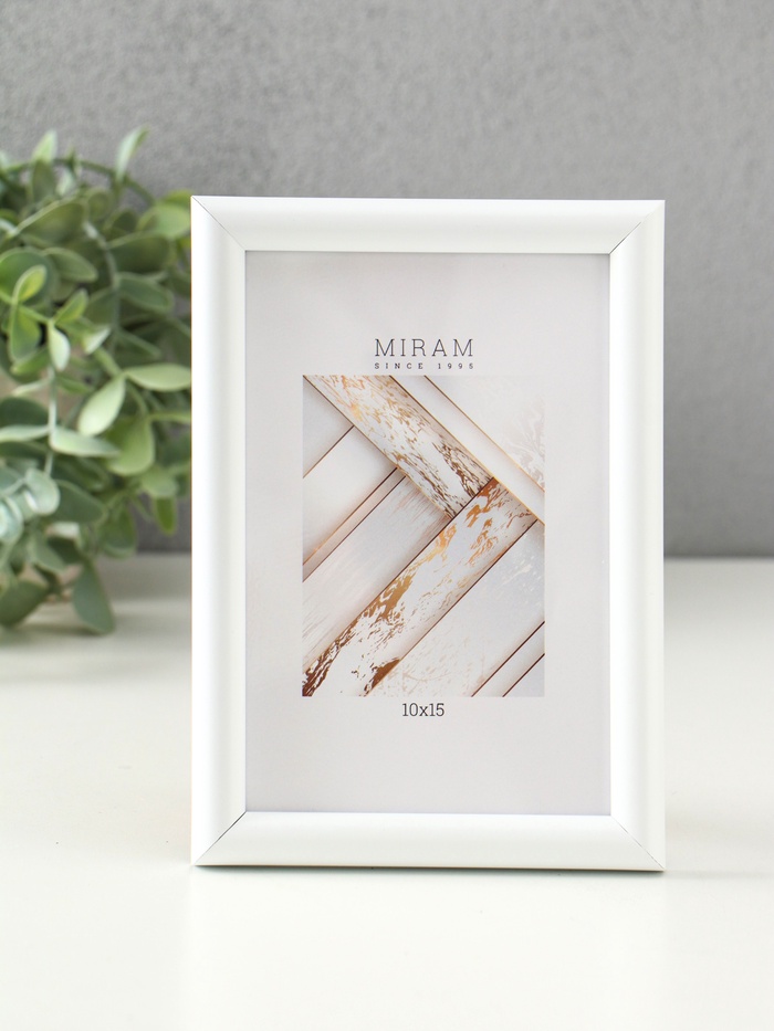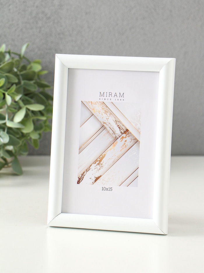 Фоторамка для фото 10×15 см «МИРАМ», пластик, белый, (пластиковый экран)