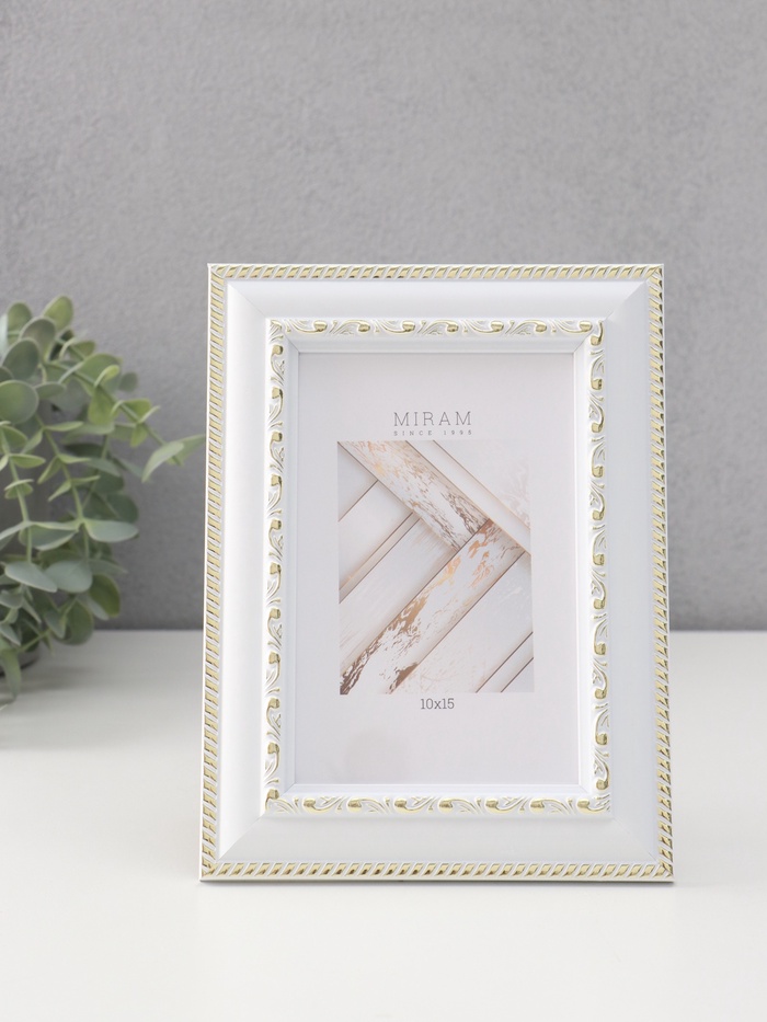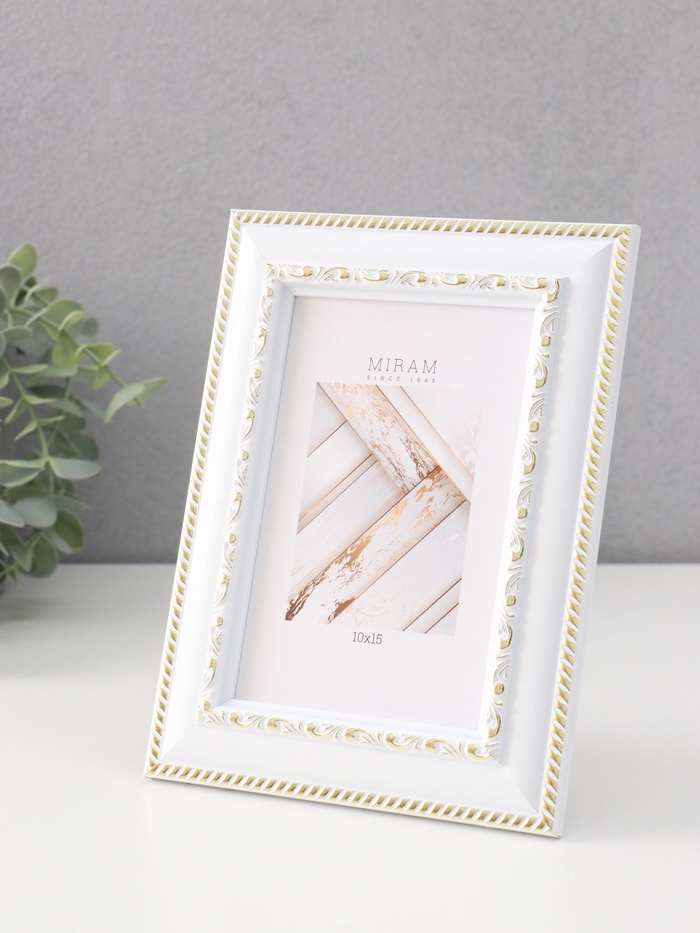 Фоторамка для фото 10×15 см «МИРАМ», пластик, белый с золотом