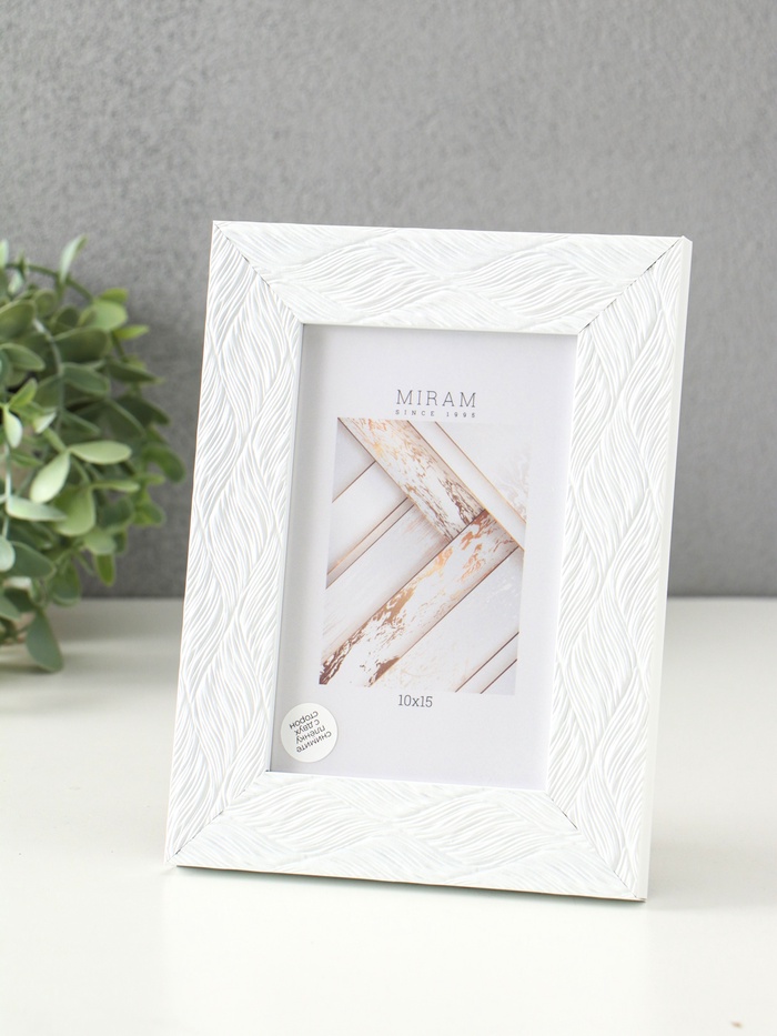 Фоторамка для фото 10×15 см «МИРАМ», пластик, белый, волнистый, (пластиковый экран)