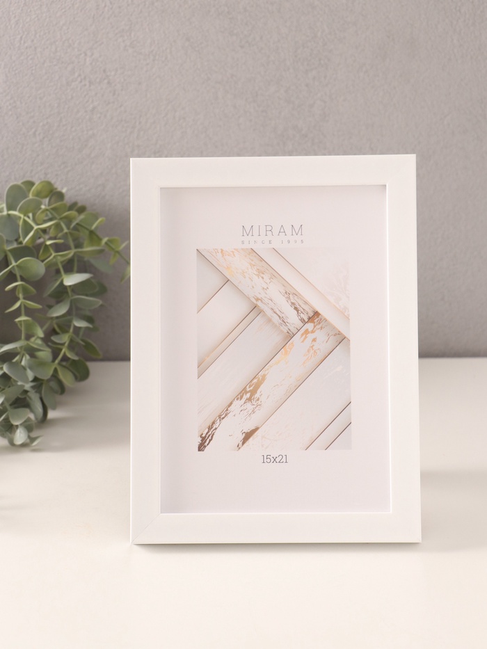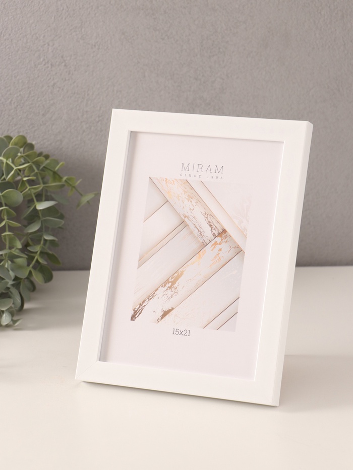 Фоторамка для фото 15×21 см «МИРАМ», пластик, белый, (пластиковый экран)