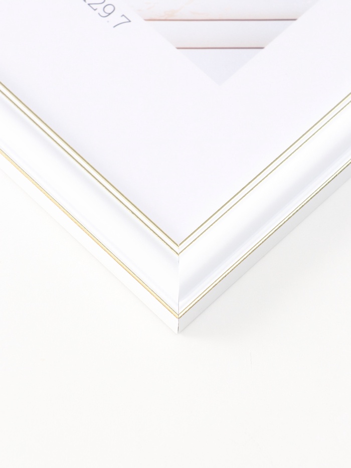 Фоторамка для фото 21×29.7 см (A4) «МИРАМ», пластик, белый, золото