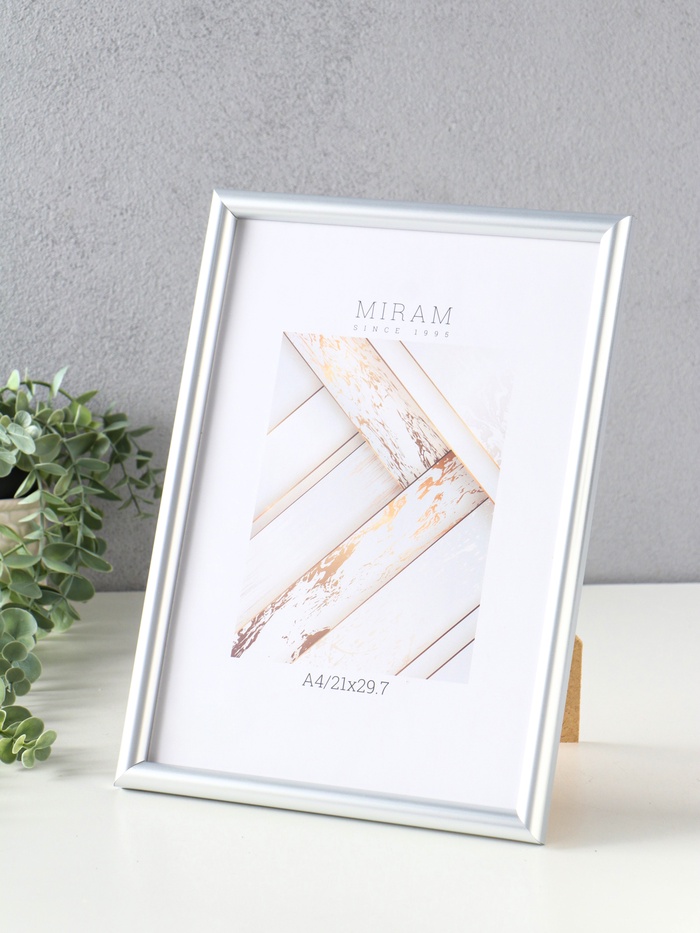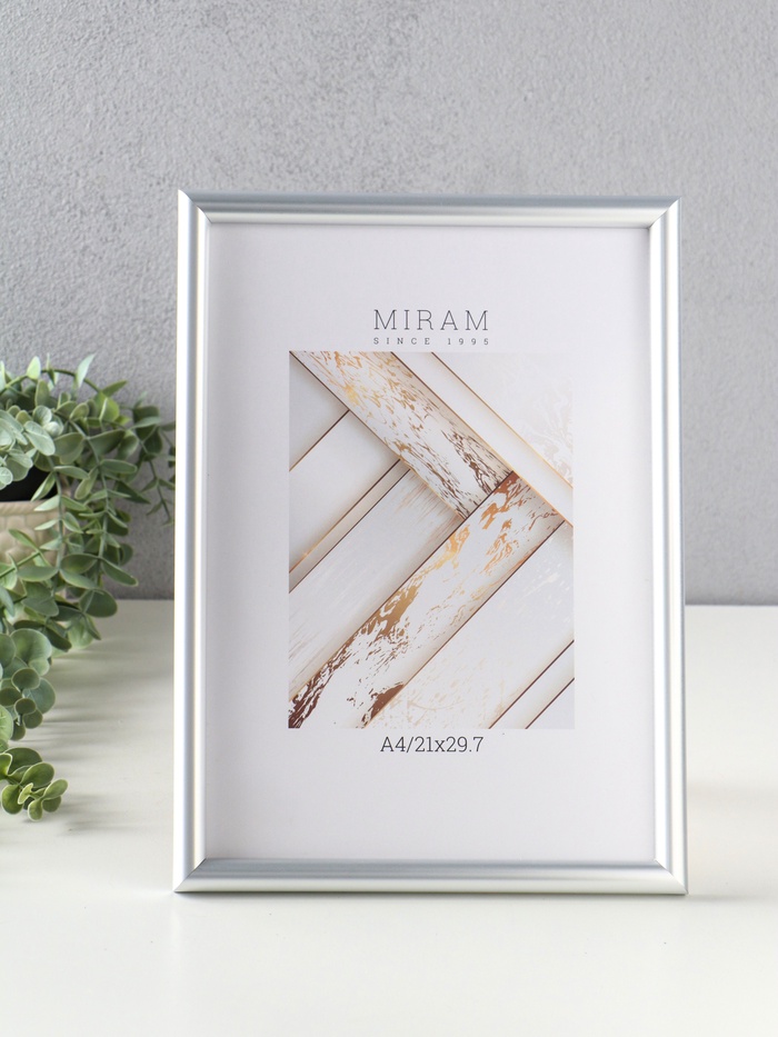 Фоторамка для фото 21×29.7 см (A4) «МИРАМ», пластик, серебро, (пластиковый экран)