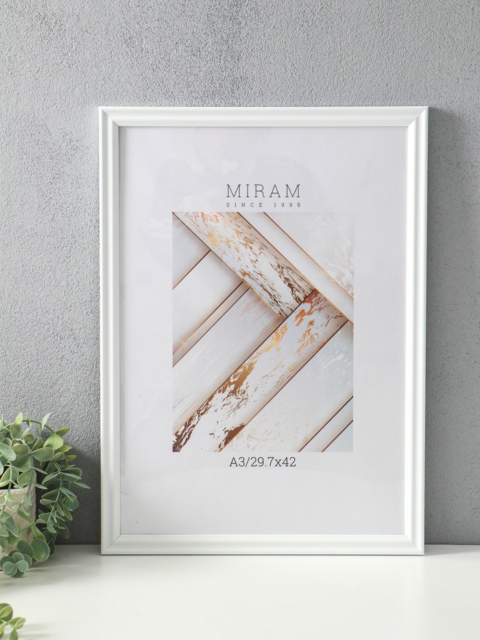Фоторамка для фото 29.7×42 см (А3) «МИРАМ», пластик, белый, (пластиковый экран)