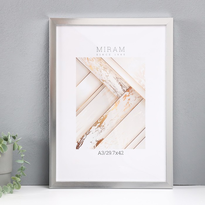 Фоторамка для фото 29.7×42 см (А3) «МИРАМ», пластик, серебро, (пластиковый экран)