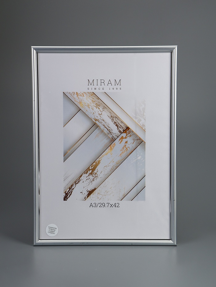 УЦЕНКА Фоторамка пластик «МИРАМ» 29.7×42 см, (A3) 636421, серебро (пластиковый экран)