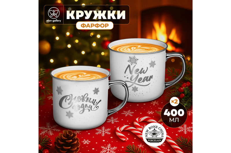 Набор 2 кружек «С новым годом» от Elan Gallery предназначен для эстетичной сервировки вашего стола. Размер каждой ёмкости – 12,5х9,5х8,8 см, объём – 400 мл. Выполнены из фарфора нового поколения new bone china, сочетающего в себе изящность и высокую прочность. Такие изделия легко отмываются, поэтому сохраняют привлекательный вид и практичны в использовании. От других видов костяного фарфора new bone china отличается большей экологичностью в производстве. Поверхность изделий украшает серебристая окантовка и каллиграфические надписи. Мы создали коллекцию новогодних и рождественских товаров для сервировки и декора, которые наполнят пространство атмосферой уюта. Изделия помогут оформить интерьер праздничными композициями и добавят нотку зимнего волшебства. Кофейные кружки помогут вам провести множество приятных завтраков с капучино и латте, а также уютные чайные вечера с конфетами, вафлями, другими десертами и сладостями. Подойдут ценителям чая и кофе, которые любят пить из красивой и необычной посуды. Согрейтесь зимой любимым напитком: какао с маршмэллоу, ягодным чаем, горячим шоколадом или глинтвейном. Летом освежитесь домашним лимонадом или морсом. Фарфоровая посуда с изображением маленьких новогодних помощников привнесёт в любое помещение дух волшебства и праздника! Это оригинальный элемент вашего декора. Не рекомендуется применять абразивные моющие средства. Не подходят для использования в посудомоечной машине и микроволновой печи. Поставляются в дизайнерской картонной коробке – благодаря ей вам не потребуется дополнительная подарочная упаковка. В коллекции бренда Elan Gallery представлены посуда, сувениры и украшения с новогодней символикой. Каждый подберёт оригинальный сюрприз для семьи, друзей и коллег на Новый год и Рождество. Такой подарок наполнит дом семейным теплом и духом праздника! /
