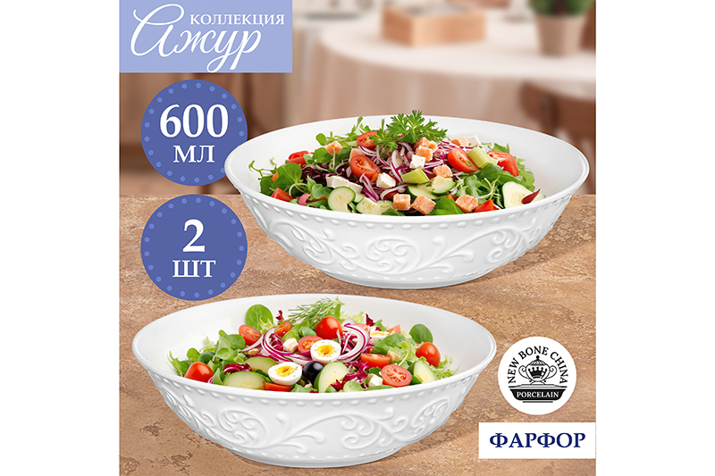 Набор 2 салатников 600 мл 17,5*17,5*5 см "Ажур" фарфор NEW BONE CHINA