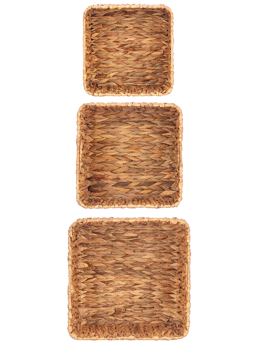 Набор 3 плетеных корзин 25*25*21см, 29*29*23 см, 33*33*25 см, водный гиацинт