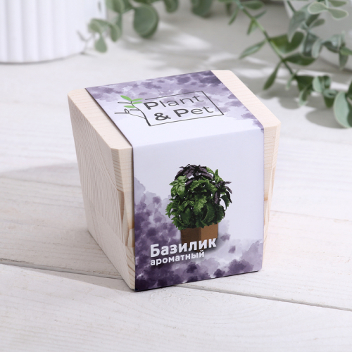 Набор для выращивания P&P «Базилик ароматный», в кубе из дерева