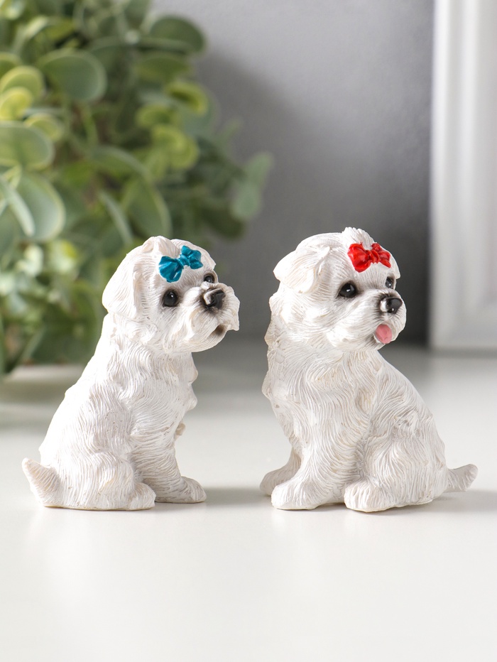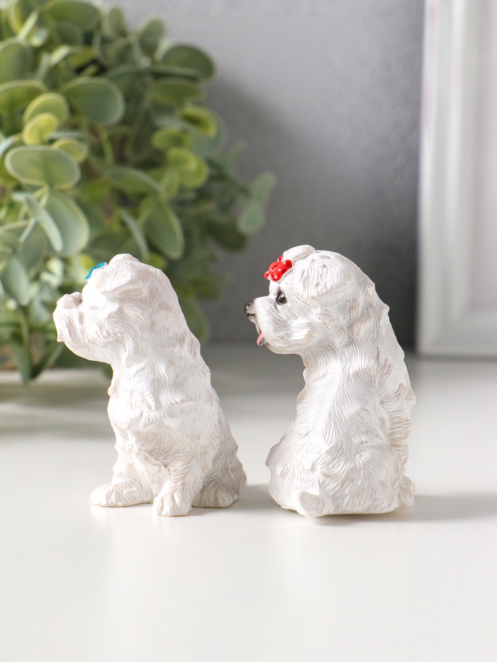 Набор фигурок 2 шт. полистоун «Белые терьеры с бантиками», 3.7×5.2×6.2 см
