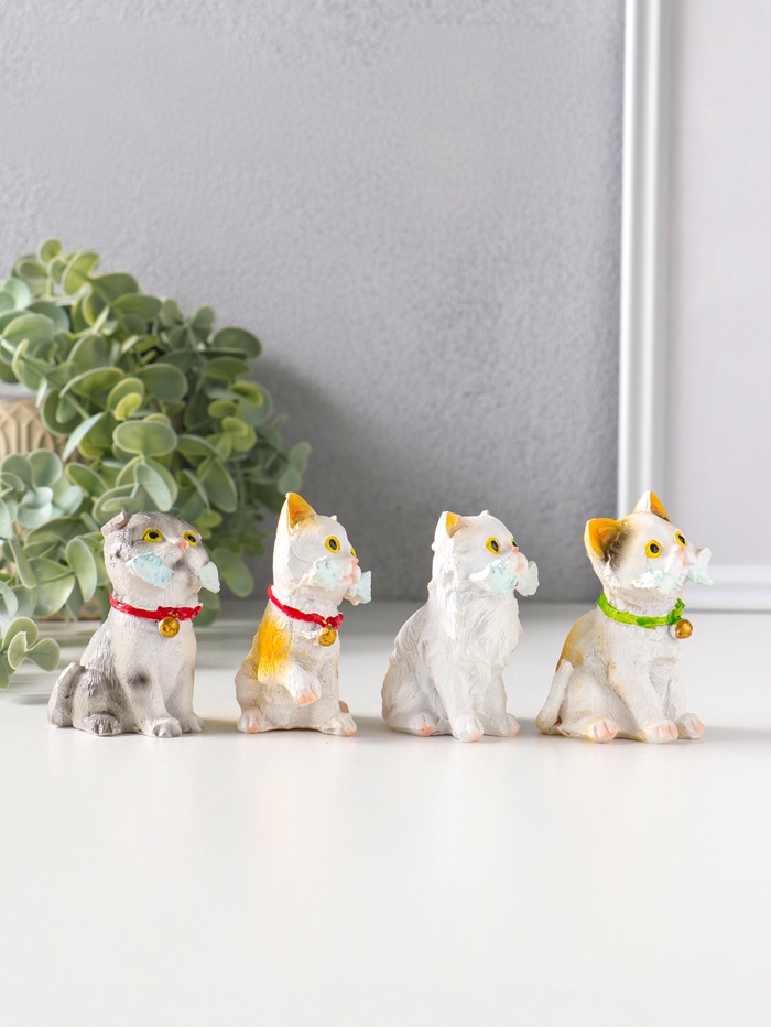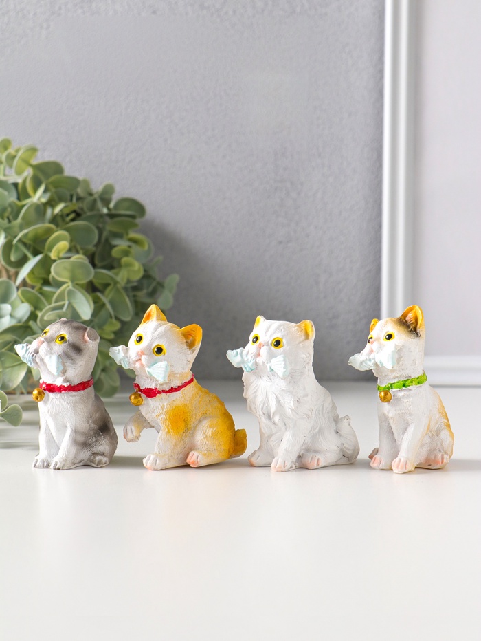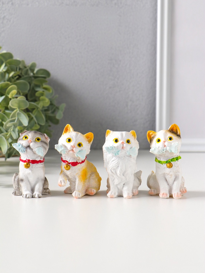 Набор фигурок 4 шт. полистоун «Котятки с рыбьими скелетами», 4×5×6.5 см