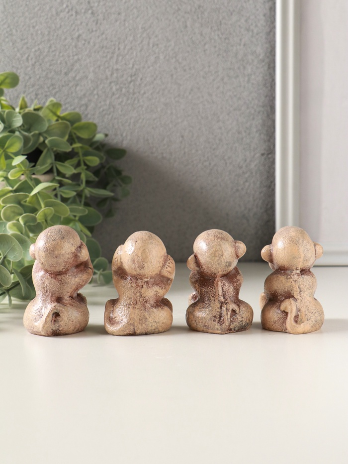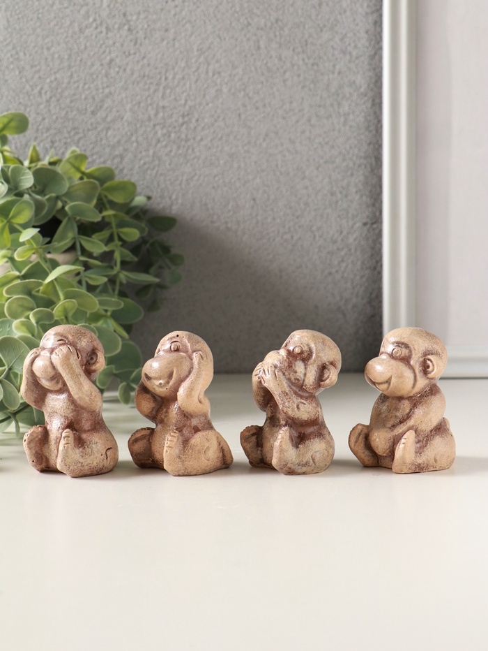 Набор фигурок «Обезьянки», 4 шт., 6 см, слоновая кость