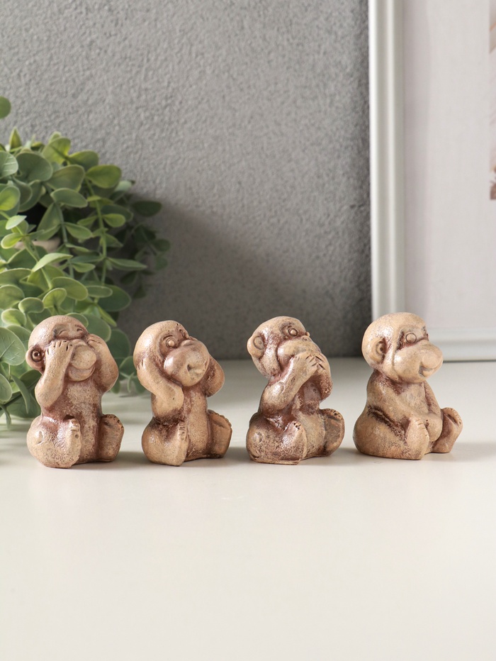 Набор из четырёх гипсовых обезьянок — это элегантный акцент для вашего интерьера и душевный подарок. Миниатюрные фигурки в оттенке слоновой кости создают атмосферу уюта и тепла, напоминая о тропических лесах и мудрости природы. Их универсальный дизайн гармонично дополнит книжную полку, рабочий стол, сервировку праздничного стола или станет символичным украшением в год Обезьяны.