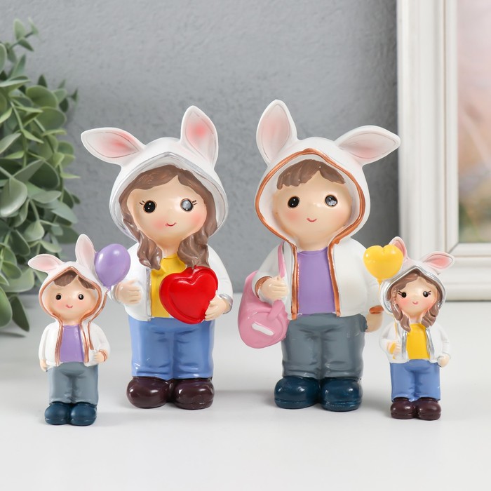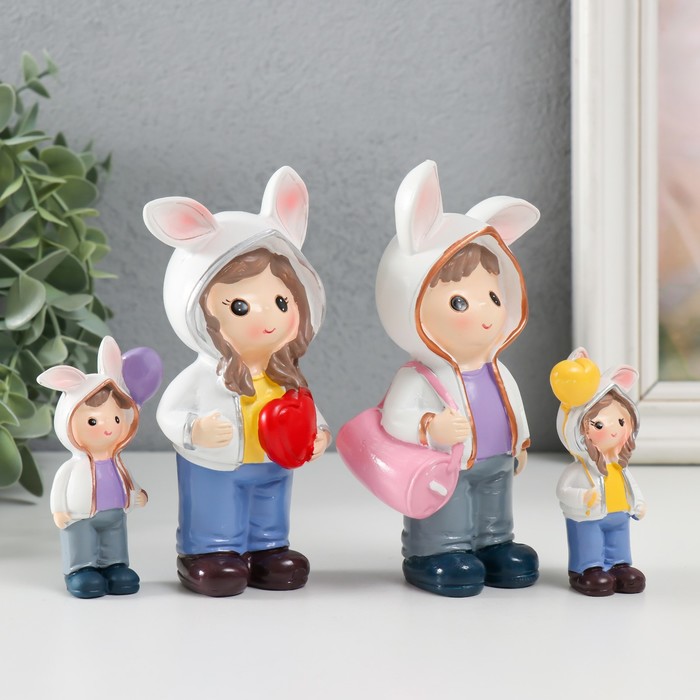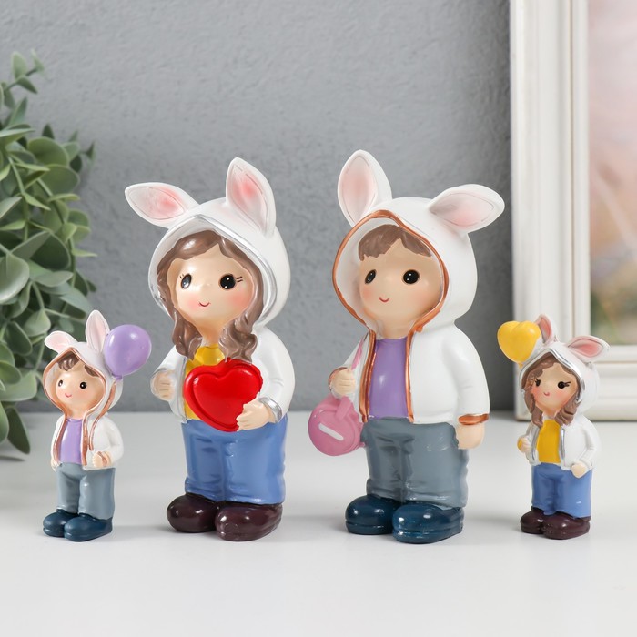 Набор фигурок полистоун «Малыши в толстовках с заячьими ушками», 4 шт., 3×2×7.5 6×3×13 см
