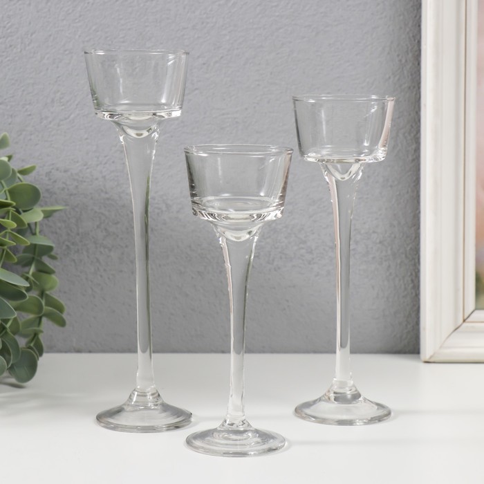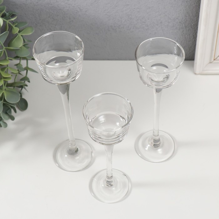 Набор подсвечников на 1 свечу «Прозрачность мыслей», 3 шт., стекло, h=15 см, 17.5 см, 20 см, прозрачный