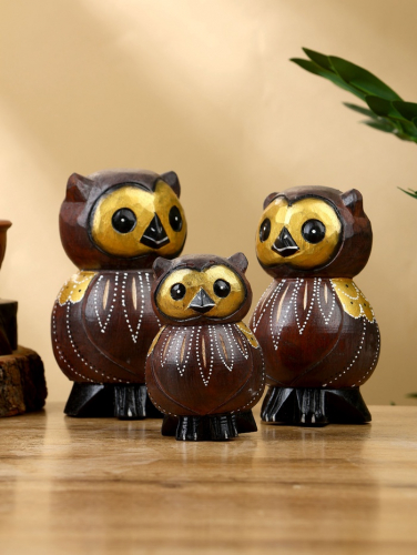 Набор сувенирный «Совята», h=14 см, h=12 см, h=10 см, дерево, коричневый