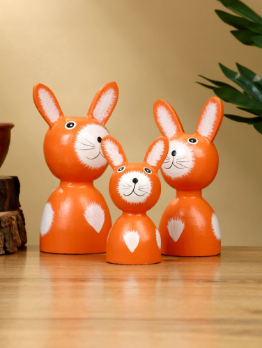Набор сувенирный «Зайки», h=15 см, h=13 см, h=10 см, дерево, оранжевый